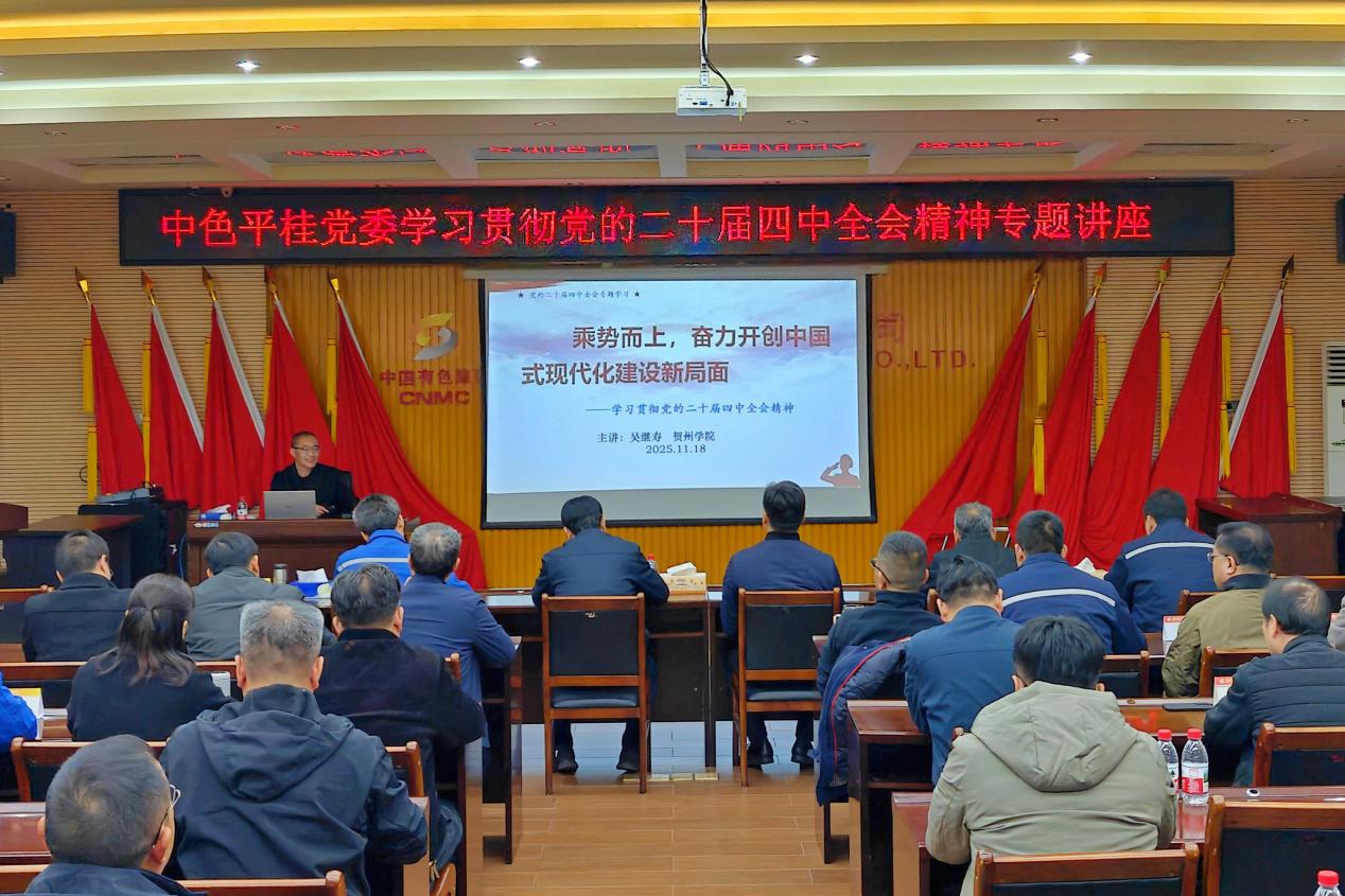 为深入学习贯彻党的二十届四中全会精神,11月18日,中色平桂党委举办学习贯彻党的二十届四中全会精神专题讲座,邀请贺州学院马克思主义学院教授、自治区“双进”教育宣讲团成员、贺州市委“二十届四中全会精神学习”“习近平谈治国理政第五卷精神学习”宣讲团成员吴继寿作专题宣讲。