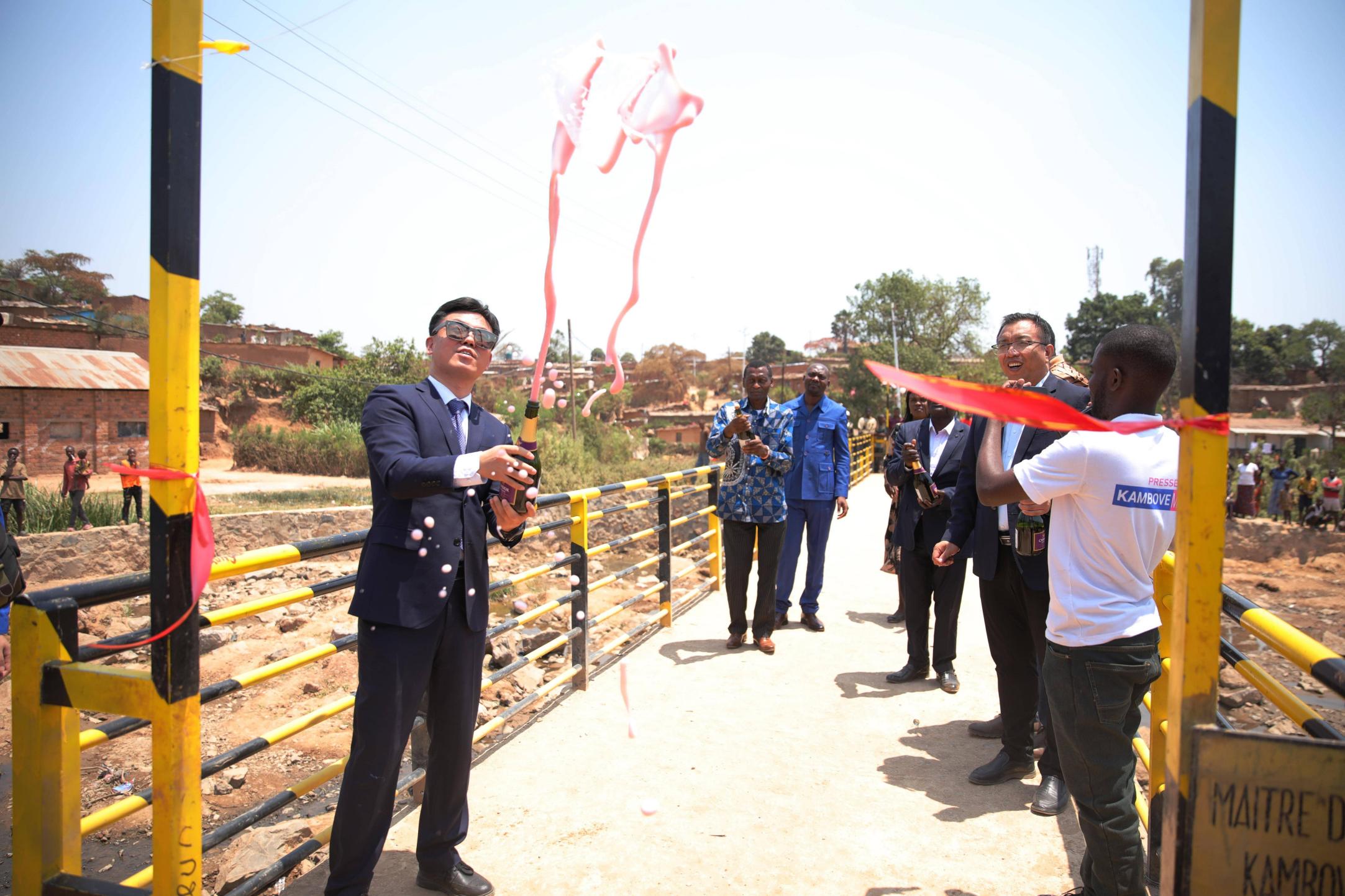 在各界来宾与当地居民的共同见证下,中色刚波夫董事长、总经理李冲与坎博韦区区长KAKONGE N’GOYE HENRI为主桥剪彩。香槟的气泡与欢呼的声浪交织迸发——桥通了!居民雨季出行难题,就此破解!这不仅是改善交通的便民之桥,更是中刚务实合作的“连心桥”、服务民生的“幸福桥”。